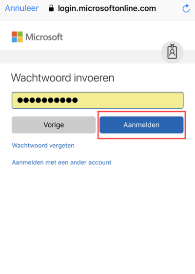 Geef uw wachtwoord in en kies voor ‘Aanmelden’